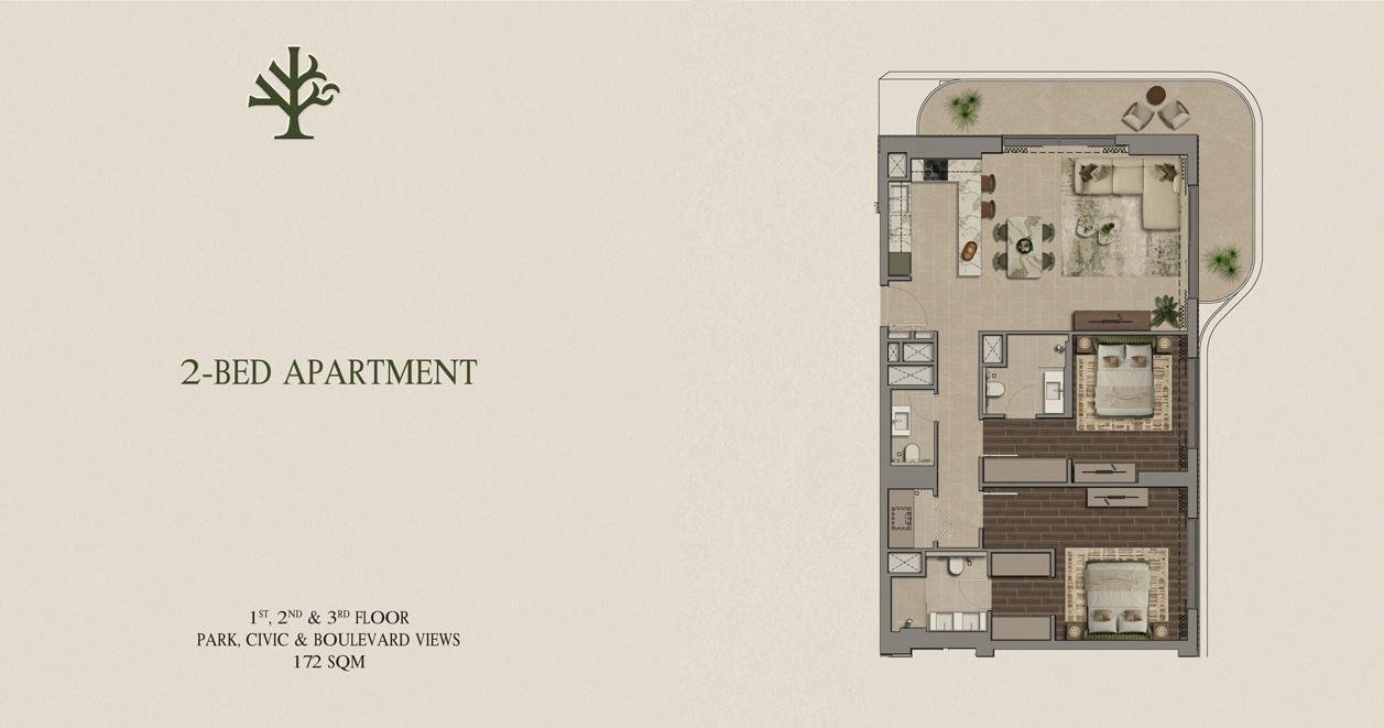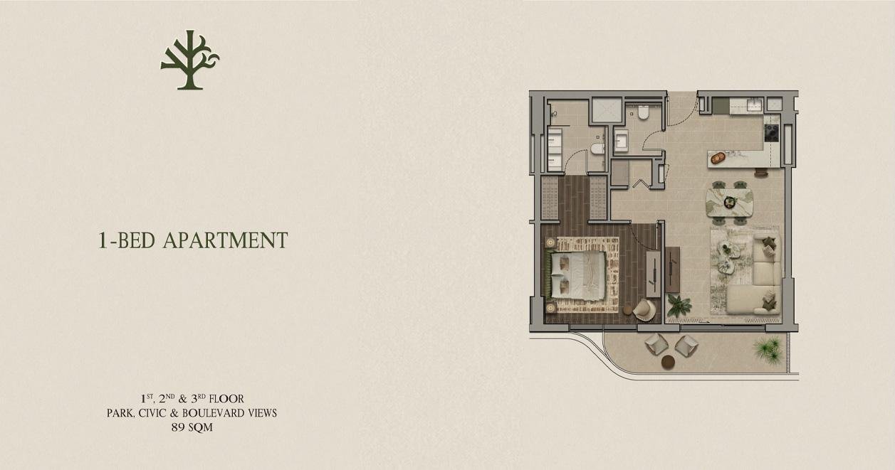 Units at Yas Park Place offer park views, civic views, boulevard views, and garden views depending on the floor and layout.