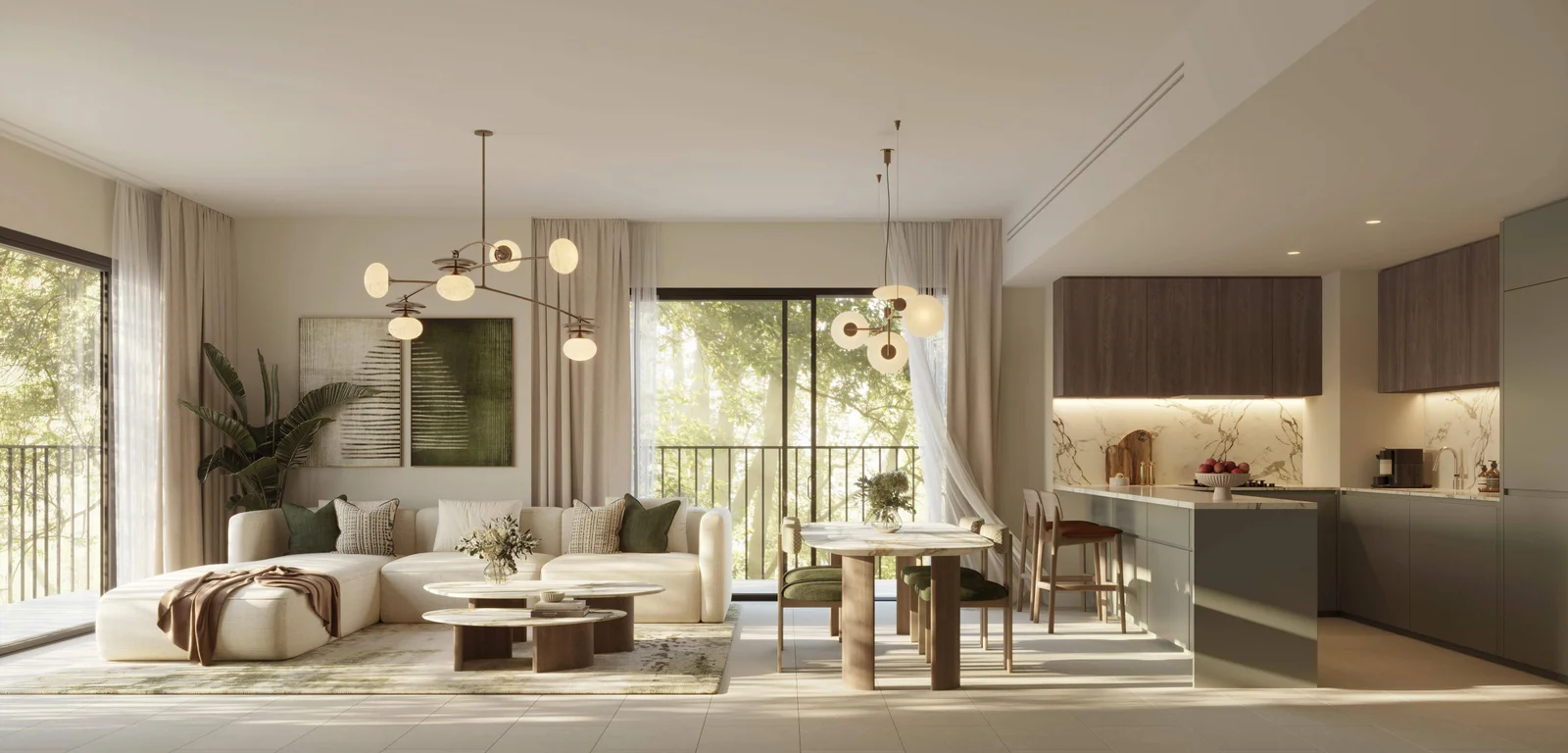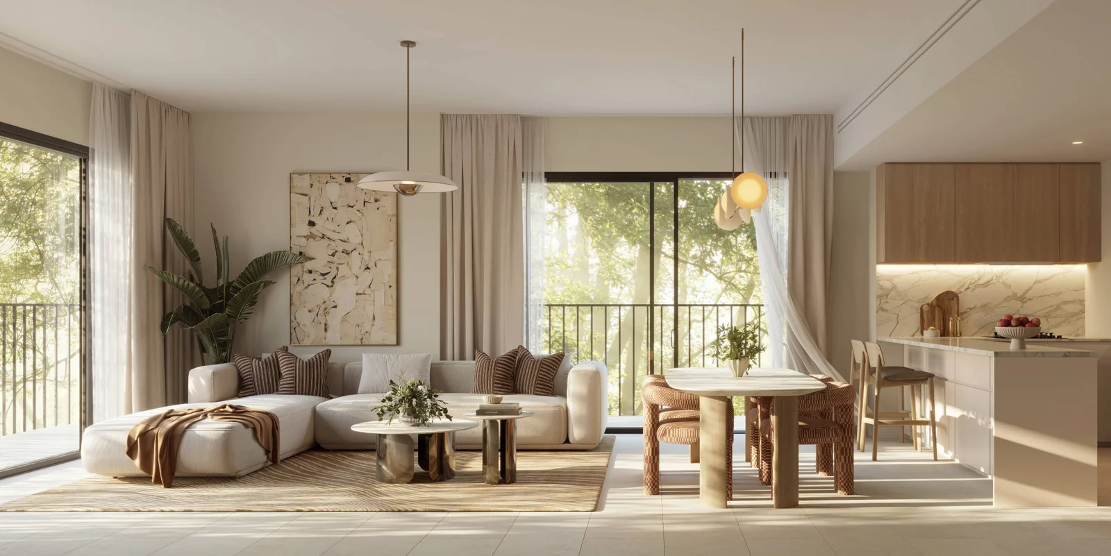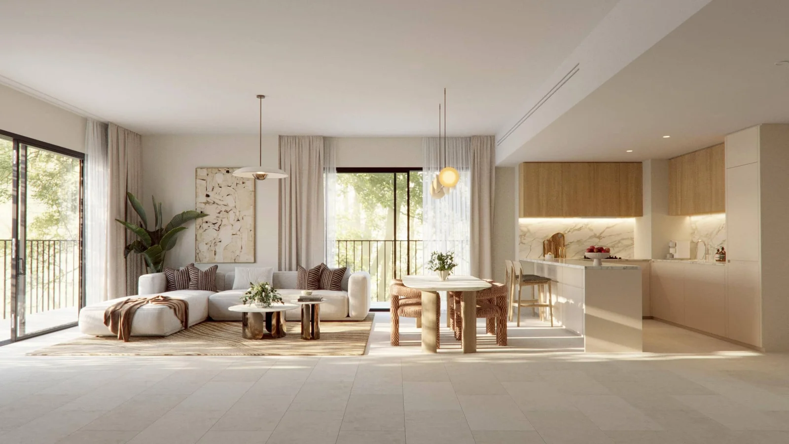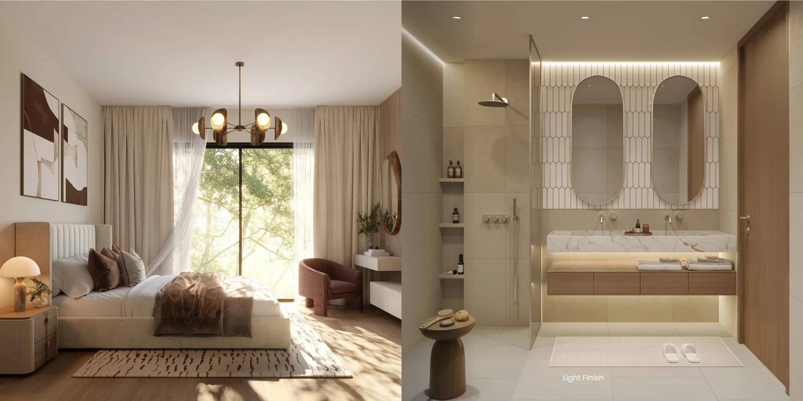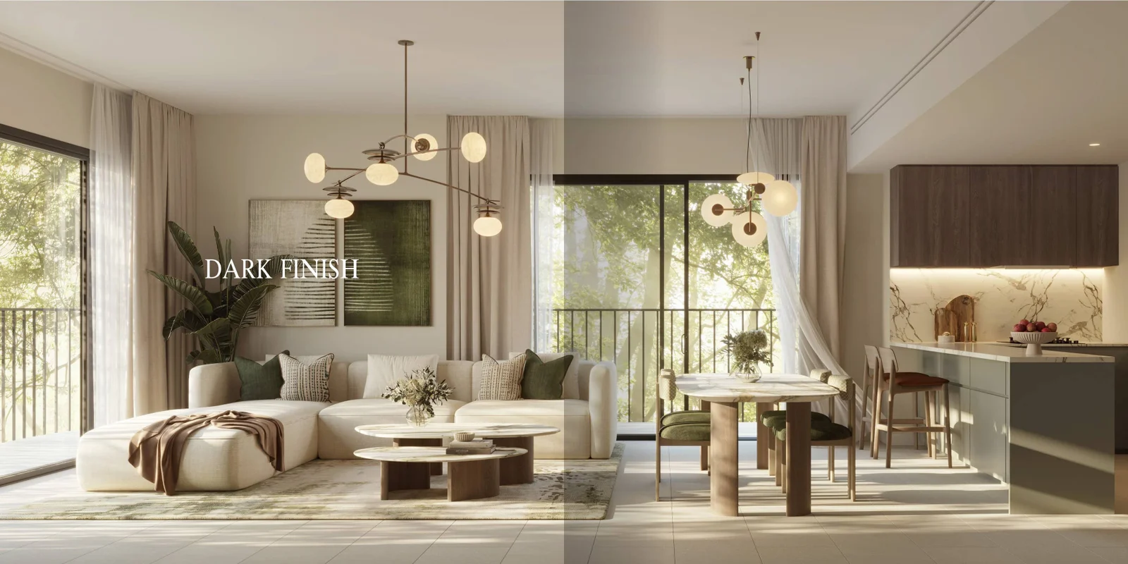Yas Park Place embraces a design philosophy that harmonizes architecture with nature. Clean lines, warm textures, and natural materials create a modern yet inviting aesthetic. Two interior palettes — Light and Dark — curated by DiLeonardo, allow residents to personalize their homes with finishes inspired by the surrounding landscape. Interiors feature porcelain flooring, engineered stone countertops, laminate cabinetry, brushed nickel sanitaryware, and glass shower partitions. Every detail is crafted to enhance comfort, elegance, and long‑term durability.